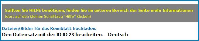 Sie können (Bild)Dateien hochladen, indem Sie den entsprechenden Link oben in einer Eingabemaske anklicken und den weiteren Anleitungen folgen. Die Datei wird dann in einem eigenen Datiordner für Ihr kennblatt gespeichert.